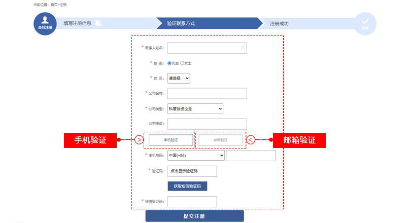 填寫聯(lián)系人信息及驗(yàn)證
