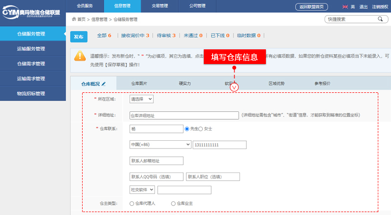 填寫倉(cāng)庫信息