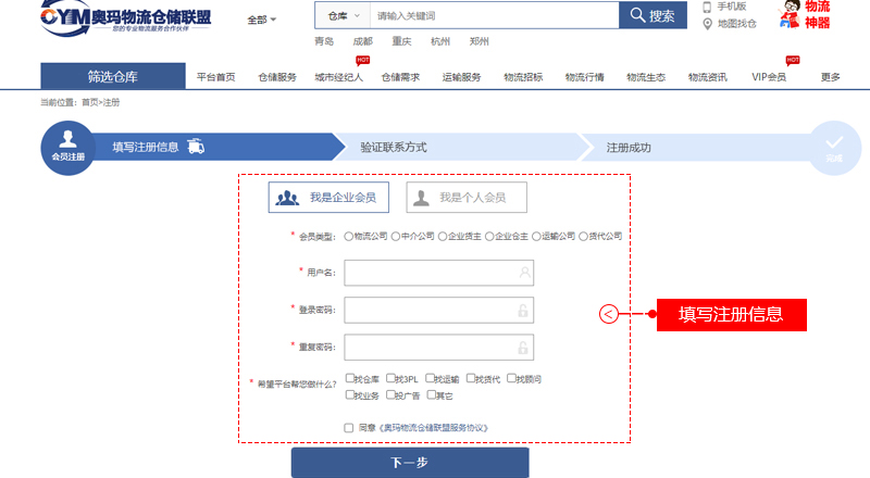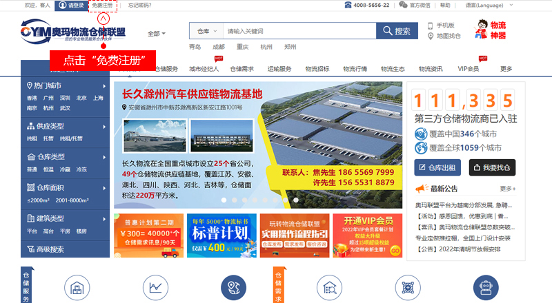 第一步:在頁面左上角,點擊 “注冊”進入注冊頁面;