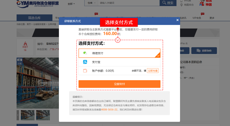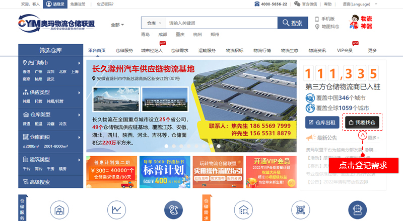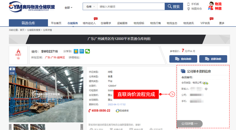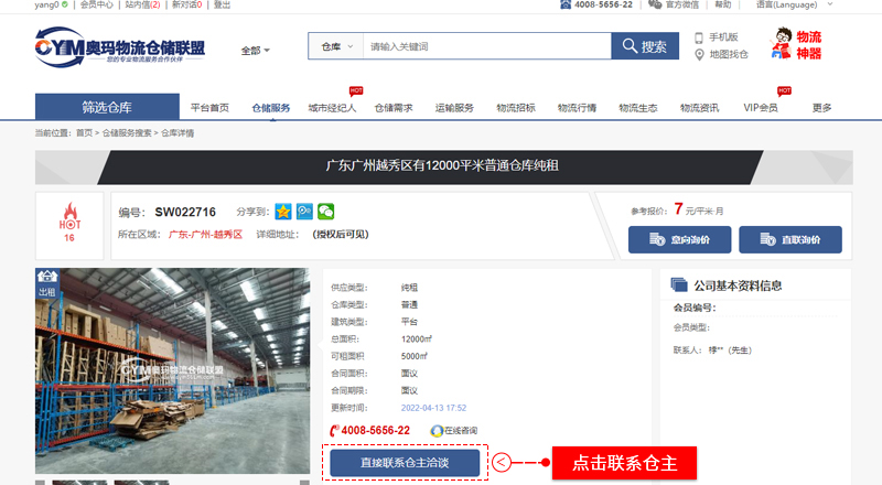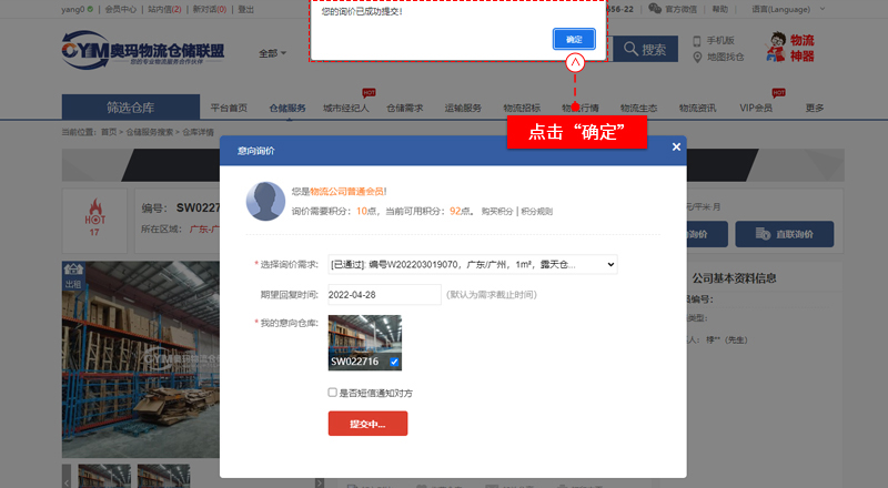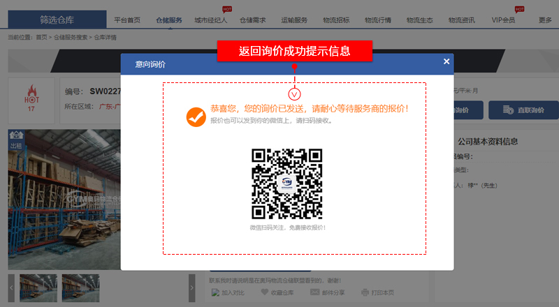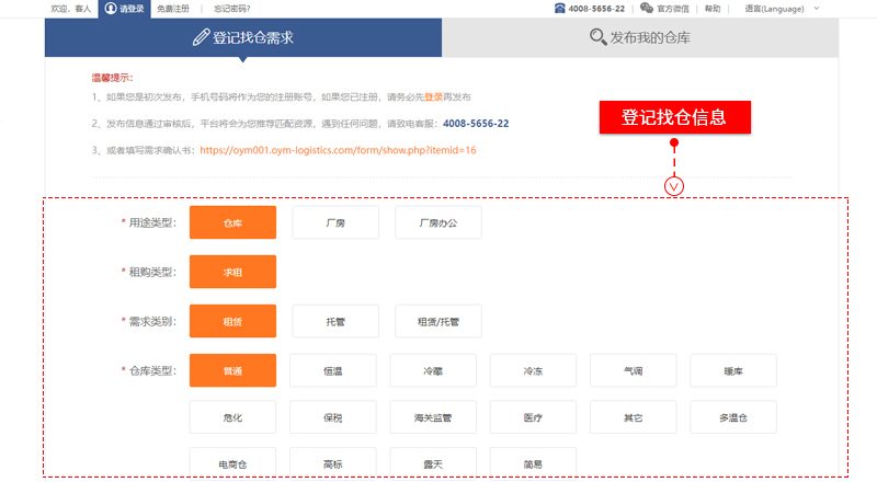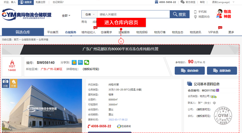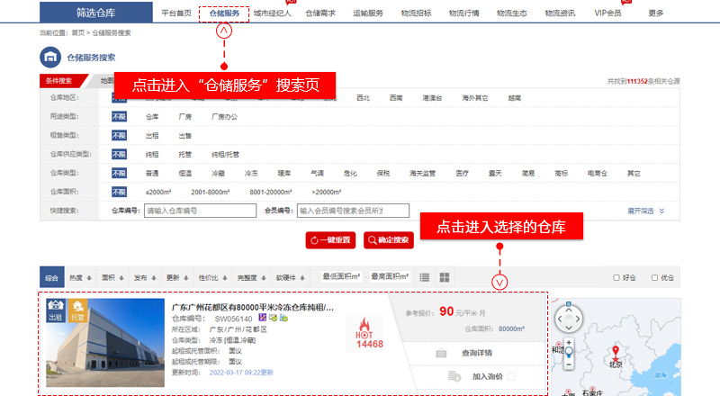 “倉儲服務(wù)”搜索頁、點擊進入選擇的倉庫