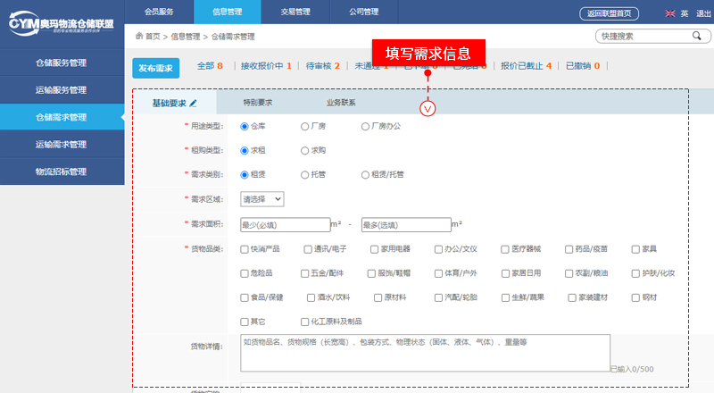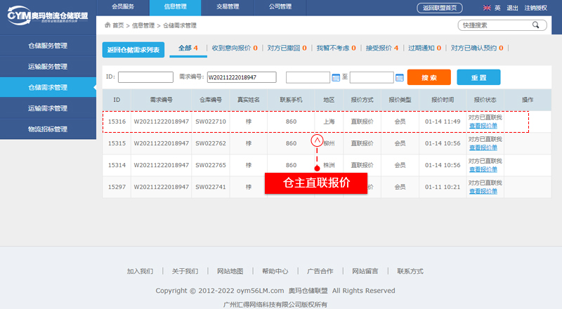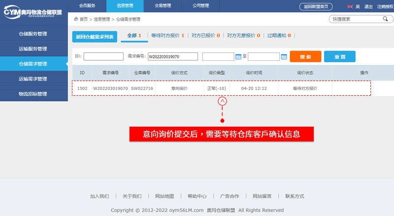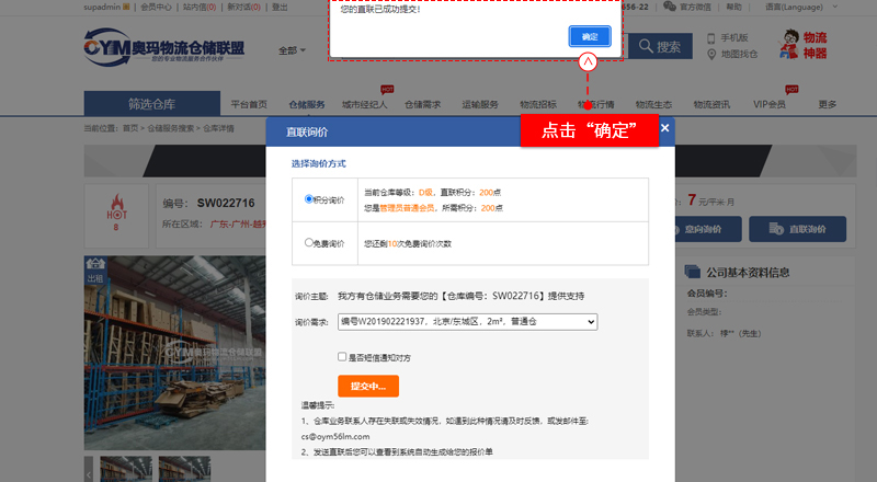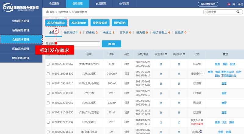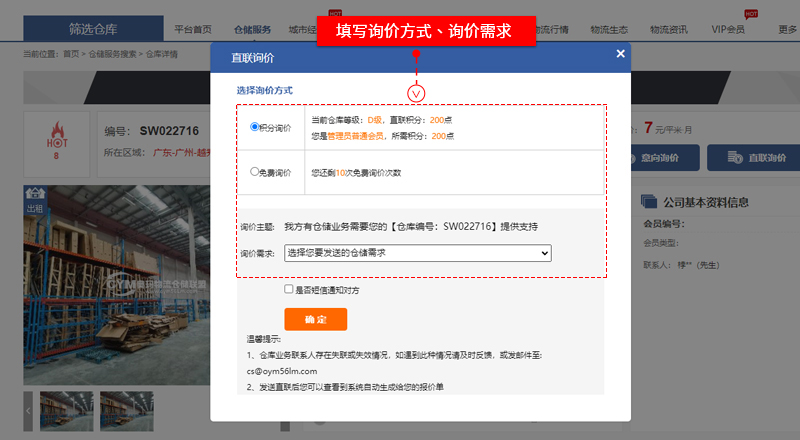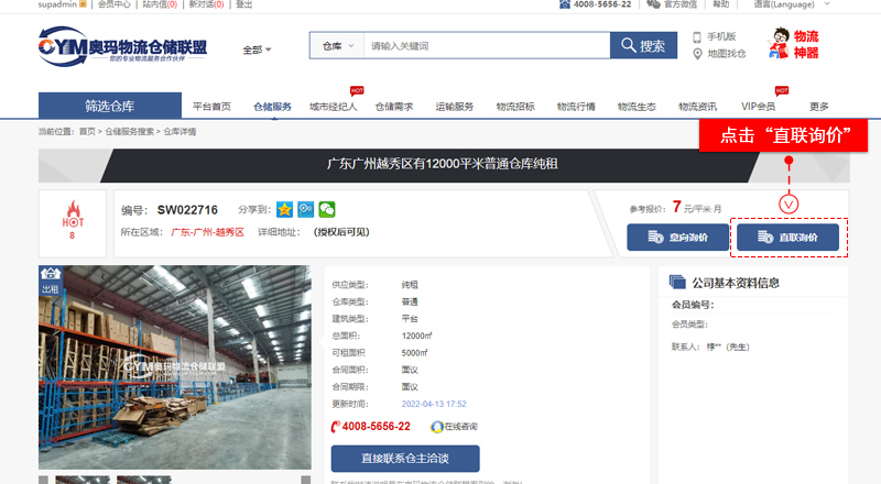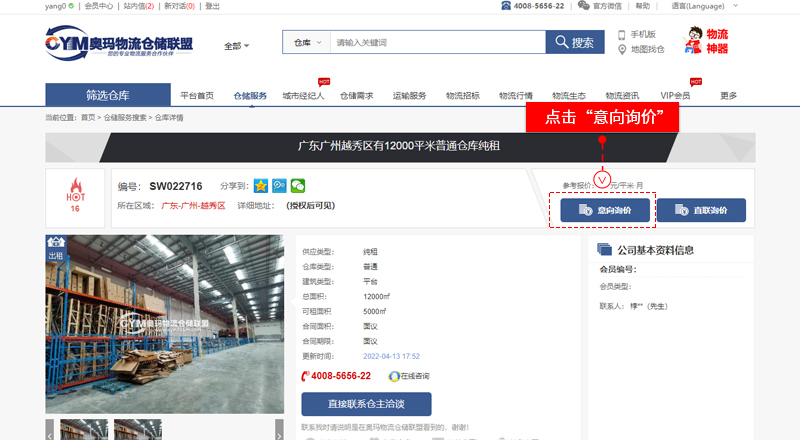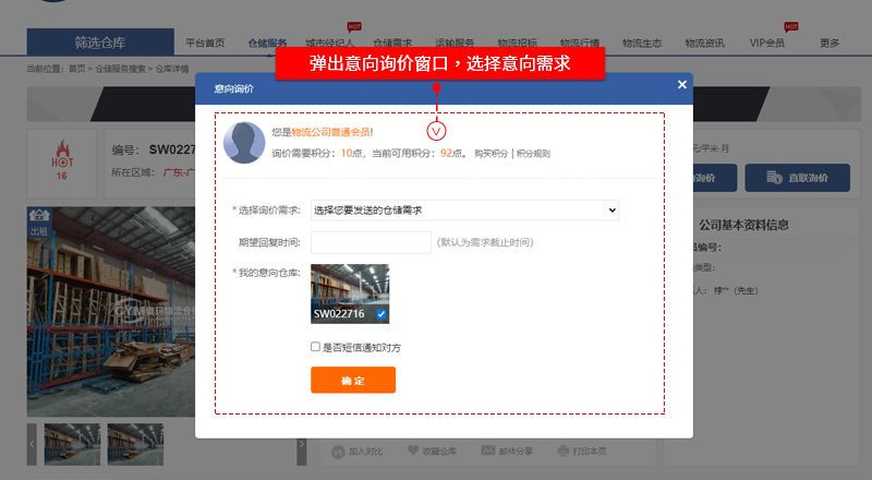 “倉儲服務(wù)”搜索頁、點擊進入選擇的倉庫